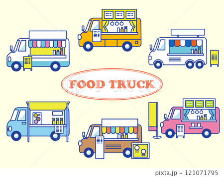 シンプルでかわいいキッチンカーのセットイラスト