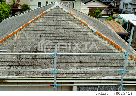 経年で傷んだ屋根のリフォーム準備 足場 住宅