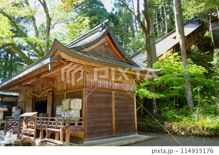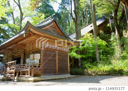 丹生川上神社下社の拝殿と屋根付き階(奈良県吉野郡下市町)