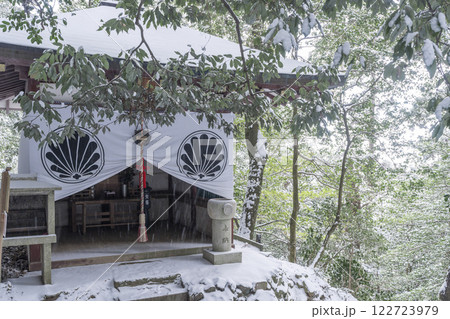 冬の鞍馬寺 奥の院参道 屏風坂の地蔵堂(革堂の地蔵尊)