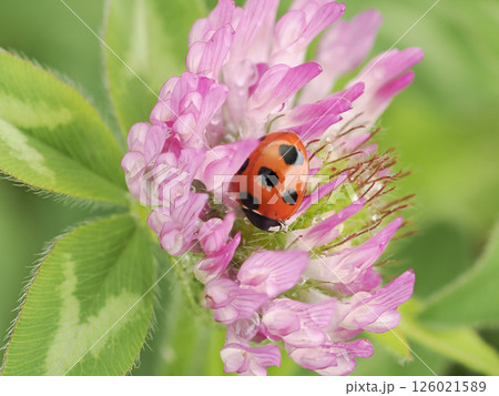 ムラサキツメクサとテントウムシ