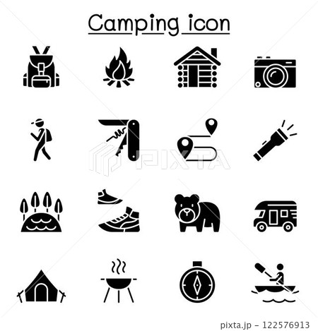 Camping icon set in glyph style