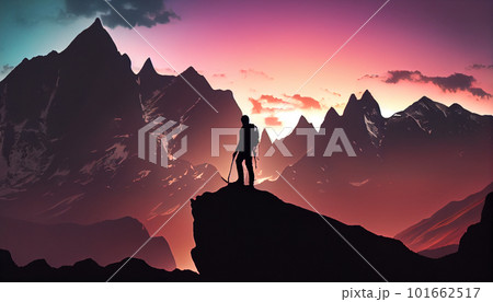 Generative AI, Silhouettes and Shadows: A Dramatic Mountain Sunset
