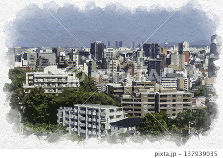 水彩画風 福岡 中央区桜坂周辺 福岡県福岡市