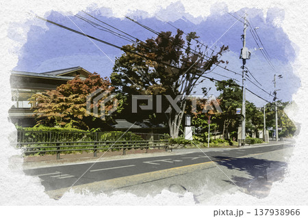 水彩画風 福岡 桜坂山手通り 福岡県福岡市