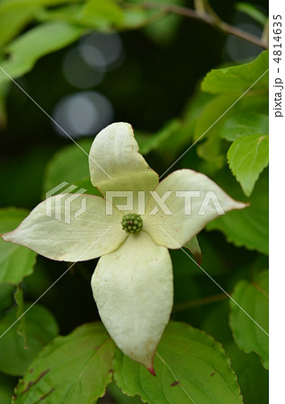 新緑の季節の白いヤマボウシの花