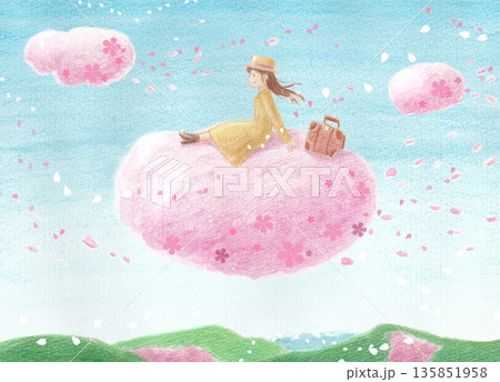 桜に乗って旅に出る女の子(縦)