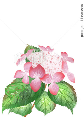 山アジサイにこちらを見つめるアマガエルの可愛いイラスト