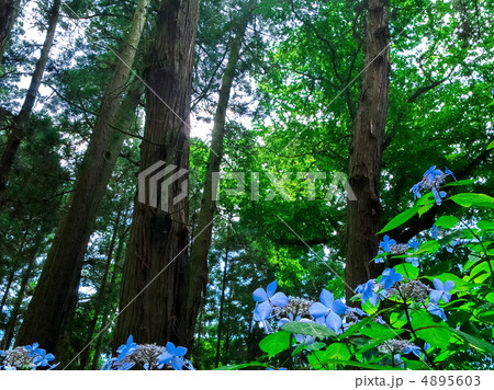 湖北地方の針葉樹林とアジサイ 滋賀県長浜市木之本町大音