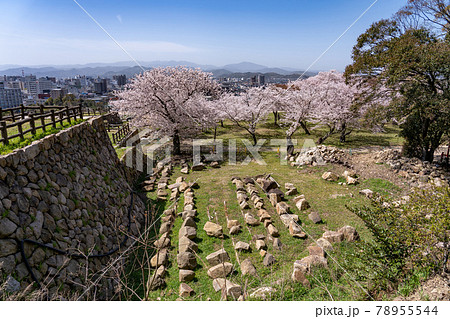 鳥取県鳥取市 春の鳥取城の二の丸の桜と石
