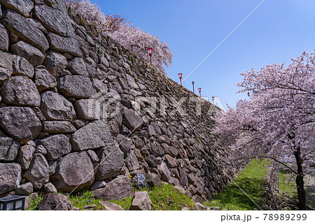 鳥取県鳥取市 春の鳥取城の二の丸の石垣と桜
