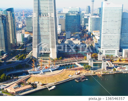 日本の横浜都市景観 開港の道・山下臨港線プロムナードなどを望む