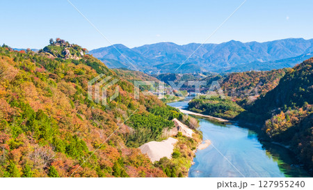 苗木城跡と木曽川(秋)