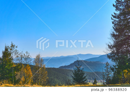 Wonderful views of the Carpathian Mountains covered with snow and a clear blue sky in Ukraine.