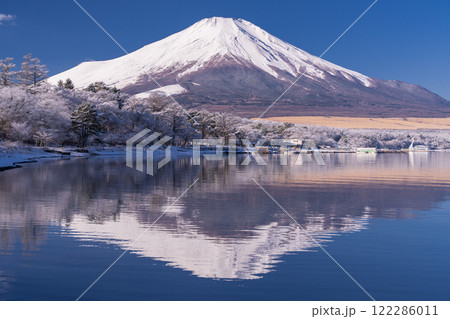 《山梨県》冬の富士山・雪景色の山中湖湖畔
