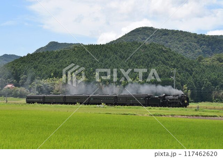 田園広がる、阿東徳佐を快走する SLやまぐち号