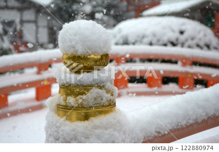 雪の上賀茂神社 玉橋の擬宝珠 京都市北区