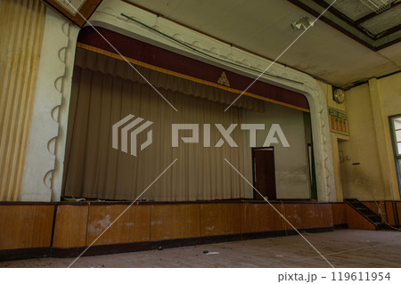 廃小学校の校舎内に残る体育館跡