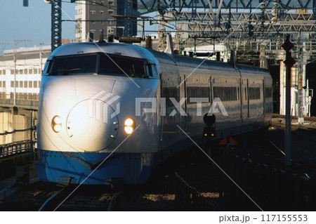 新大阪に停車中の山陽新幹線700系ひかりレールスター・0系こだま号