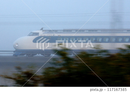 朝霧の中を突き進む山陽新幹線0系こだま号