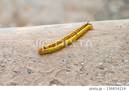 伊豆半島の伊豆山稜線歩道 小達磨山 蛾のタケカレハの幼虫