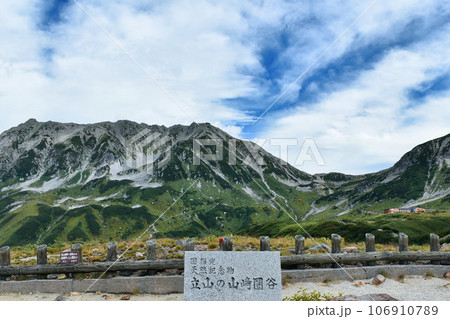 観光名所立山黒部アルペンルートの室堂の立山の山崎圏谷の記念碑