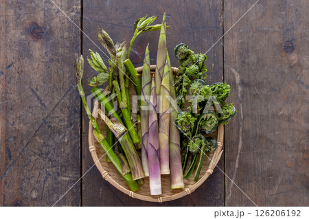 ザルに盛られた山菜