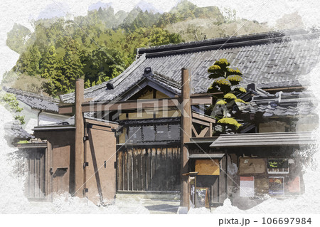 水彩画風 智頭宿 石谷家住宅 鳥取県八頭郡智頭町