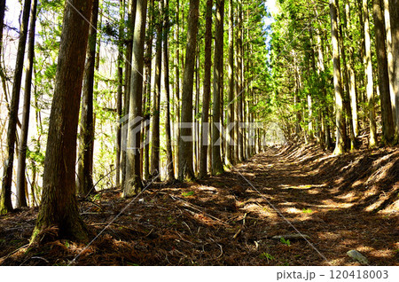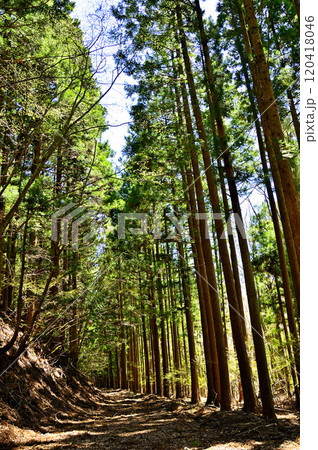 道志山塊の御正体山 白井平コースの御正体林道の杉林