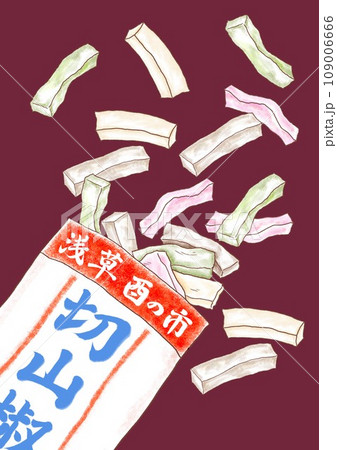 切山椒_袋からはみ出る切山椒_背景透過_浅草_酉の市