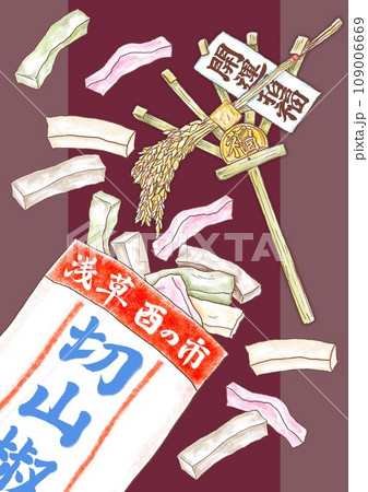 切山椒と熊手守り_背景2色入り_浅草_酉の市