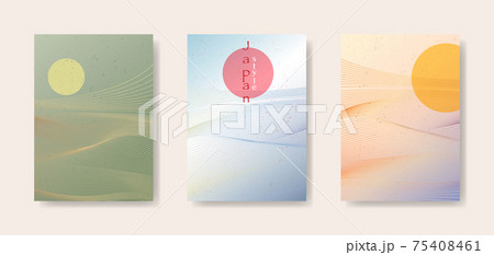 Japanese background set card with line wave pattern vector illustration. Colorful gradient Abstract template with geometric pattern. Mountain layout design in oriental style, vertical brochure flyer