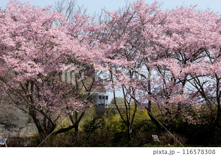 さくらの中を走るJR九州日南線DLキハ40