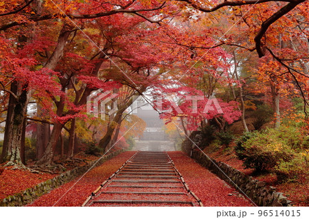 京都部京都市山科区安朱稲荷山町 毘沙門堂門跡と呼ばれる護法山安国院出雲寺の参道の階段の敷紅葉とモミジ