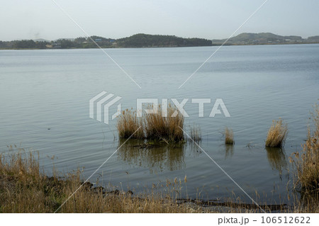 Sunset hour by the lake. Outdoors