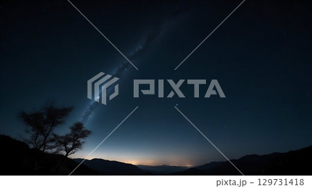A Beautiful Starlit Sky Over the Majestic Mountain Range at Dusk, Illuminating the Atmosphere