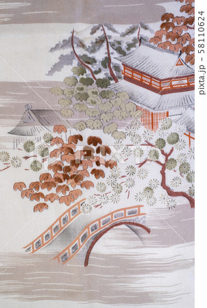 日本の紋様 絹織物 染め物 古布 山水柄 和柄