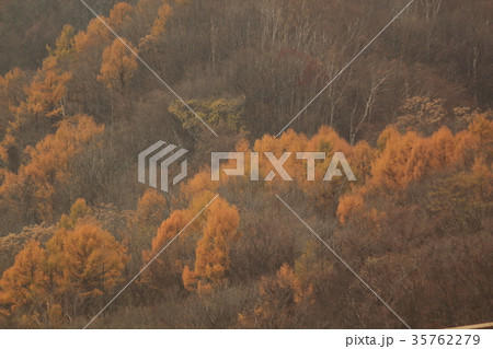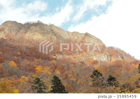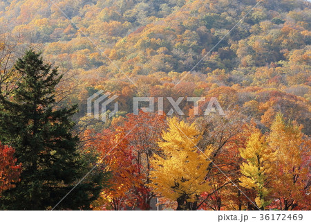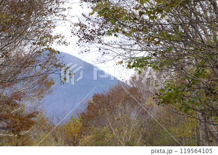 岩手県八幡平三石山を望むダケカンバの紅葉黄葉