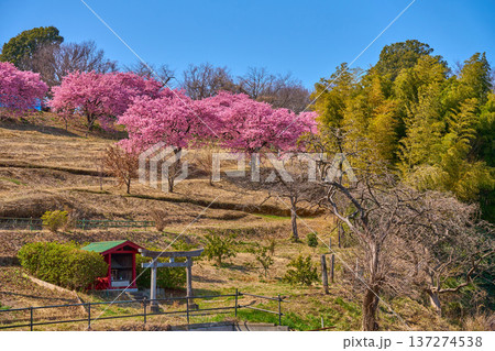 春の河津桜咲く東京都稲城市坂浜の石神神社