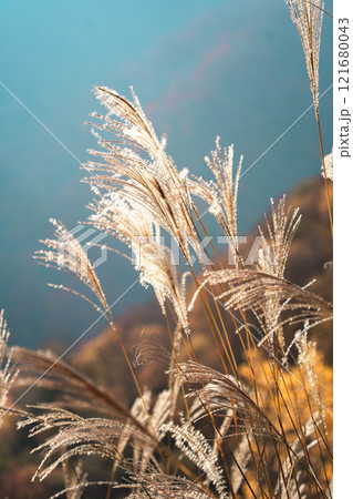秋の山に揺れるススキ