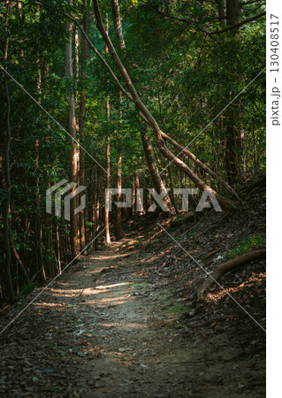 木漏れ日の中を通る登山道