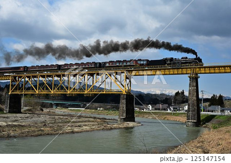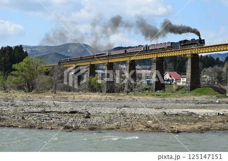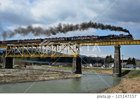磐越西線 ノ戸川橋梁を行くばんえつ物語号 蒸気機関車