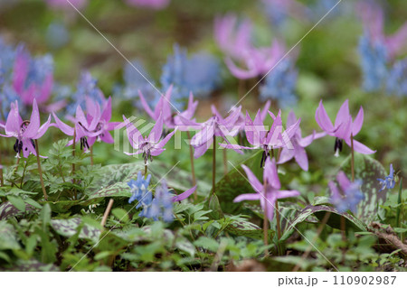 カタクリ咲く早春の森