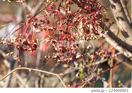 2024年12月・弾けて赤い種が見えるマユミの実