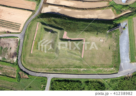 空撮 前方後方墳_福岡県朝倉郡筑前町(2017年11月撮影)