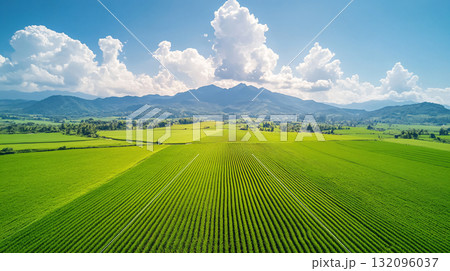 Aerial view green rice fields and the sky. natural harmony and freshness. AI Generated.