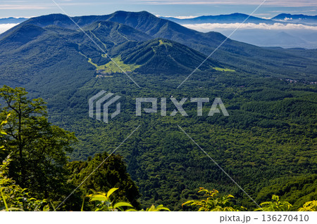 戸隠山への登りから見る飯縄山と四阿山・浅間山