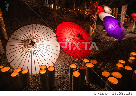 山鹿灯籠浪漫・百華百彩の和傘と竹灯籠