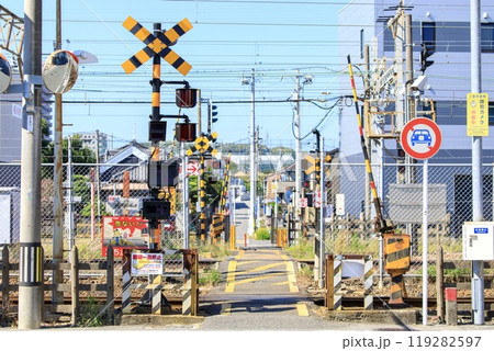 桑名市、桑名駅付近の3種類の異なる線路幅が並ぶ踏切(三岐鉄道側)