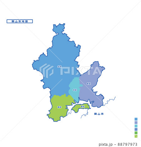岡山市行政区・岡山市地図 雨の日カラーで色分けしてみた